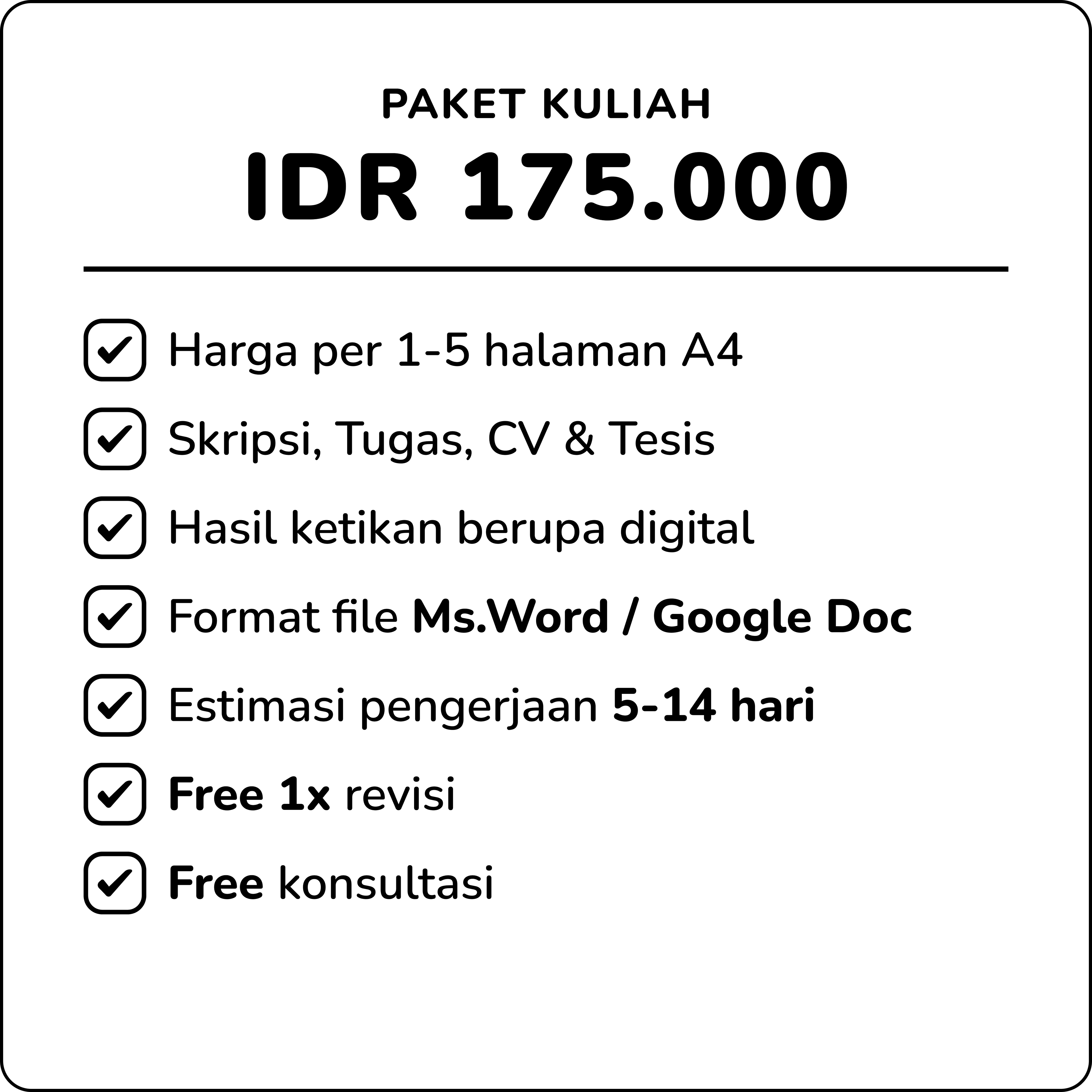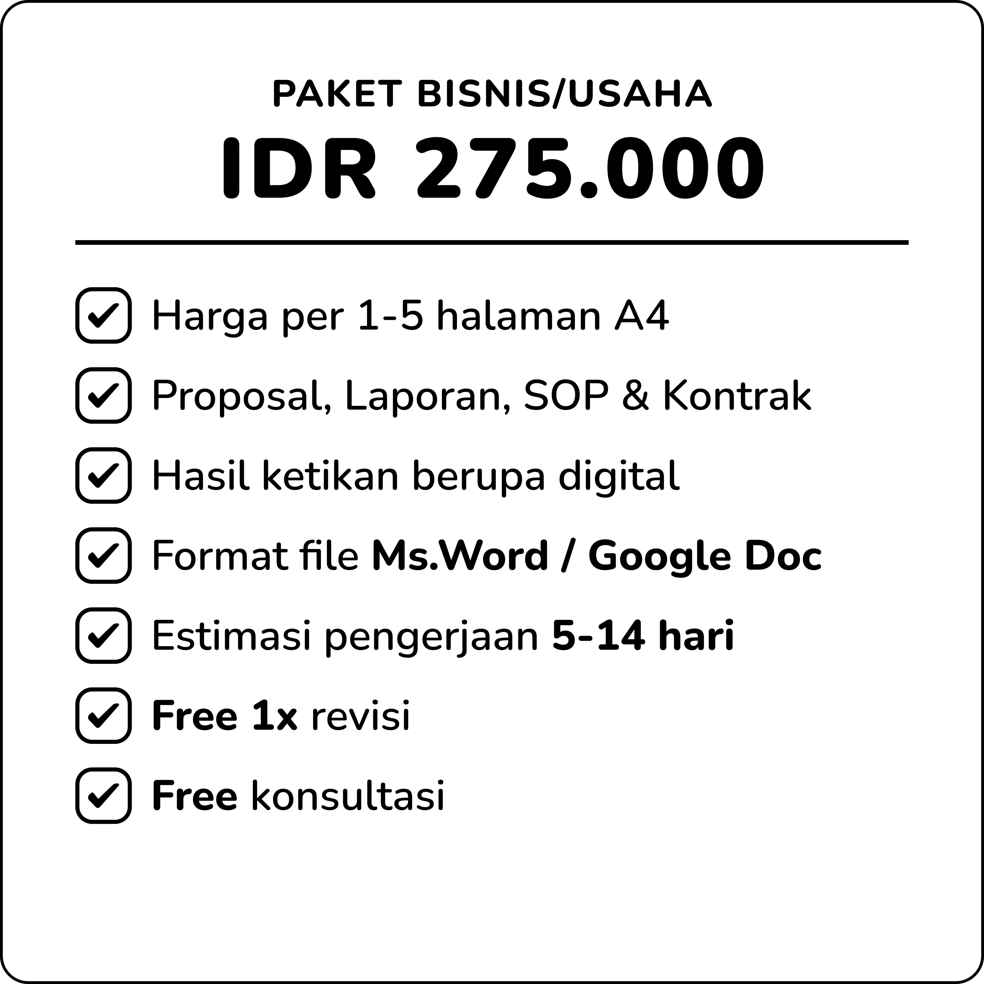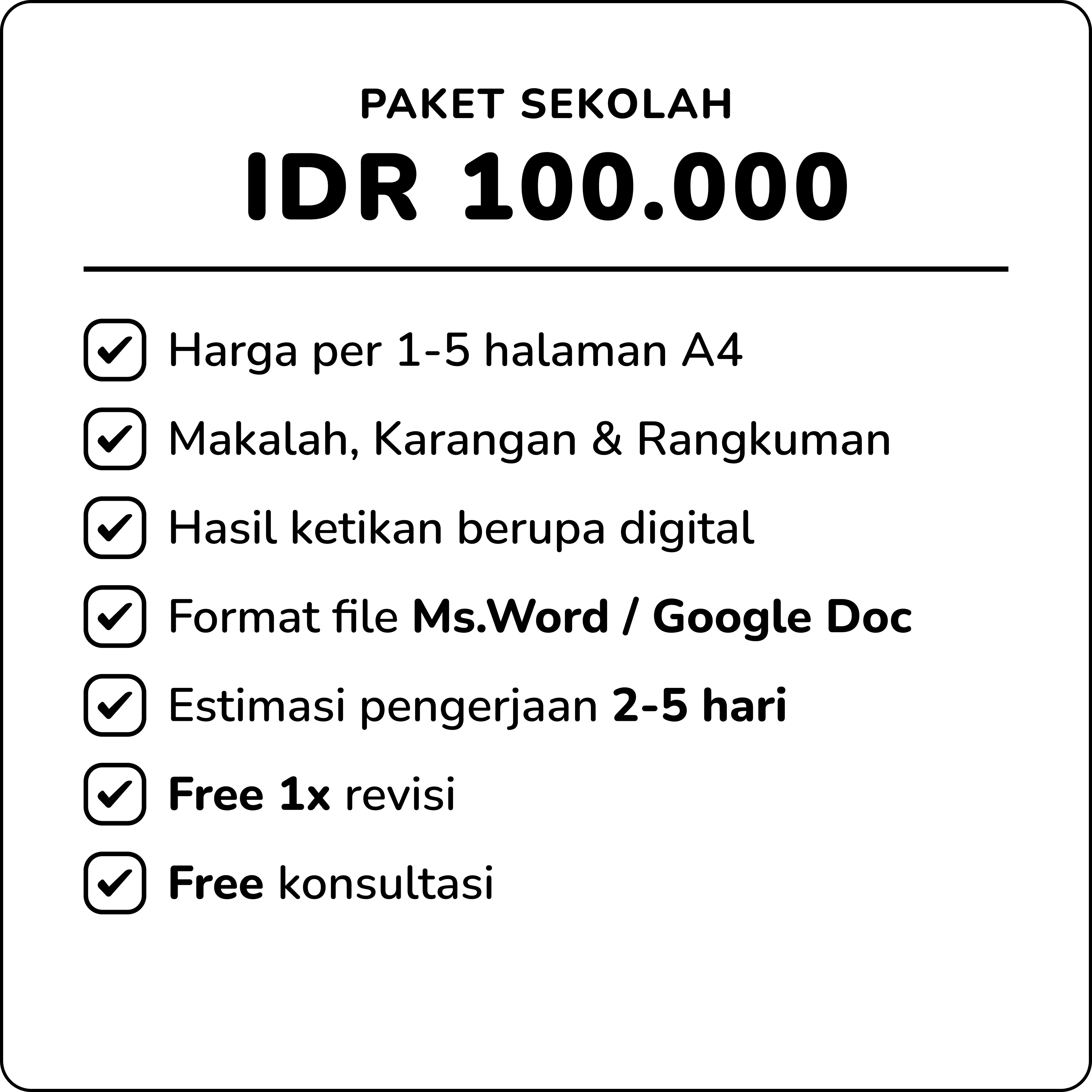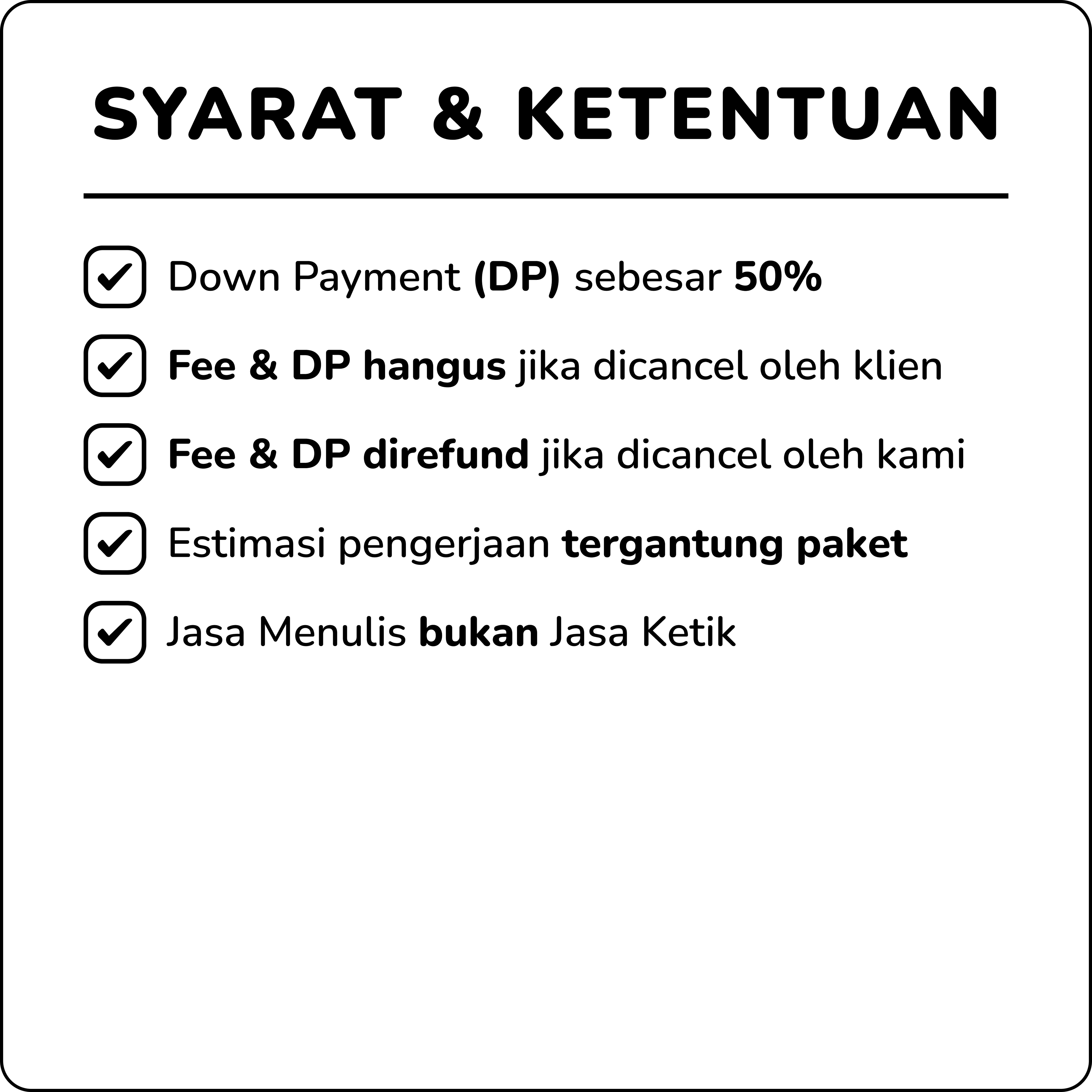 Kami menghadirkan jasa penulisan profesional yang dirancang khusus untuk memenuhi beragam kebutuhan Anda, baik dalam ranah akademis, sekolah, maupun bisnis. Kami membantu mengubah setiap ide dan strategi menjadi sebuah karya tulis yang berbobot, rapi, dan persuasif. Untuk kebutuhan akademik, kami menyusun dokumen yang terstruktur dan terhindar dari plagiarisme agar Anda dapat meraih nilai terbaik. Untuk tugas sekolah, kami memastikan setiap tulisan mudah dipahami dan disajikan dengan sempurna. Sementara itu, untuk keperluan bisnis, kami menciptakan komunikasi profesional yang memperkuat kredibilitas dan membantu Anda mencapai tujuan. Percayakan semua kebutuhan penulisan Anda kepada kami untuk hasil yang personal, berkualitas, dan tak terlupakan!